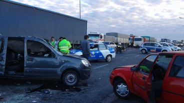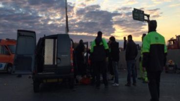 La periodista Evelin Machain informó en Radio 2 que cerca de las 7.15, una Kangoo y un Ford Fiesta protagonizaron un choque que, según trascendió, sería en cadena. La camioneta dio un vuelco y 3 personas que se trasladaban allí, resultaron heridas. Uno de ellos estaba bastante golpeado.