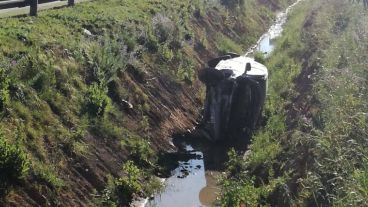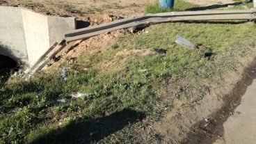 Como consecuencia del choque, el Gol Trend fue arrastrado unos metros, derribó el guardarrail y cayó en el zanjón.