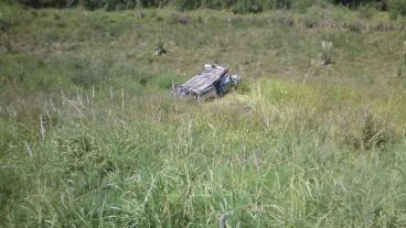 En esa maniobra, el vehículo fue chocado por otro auto que iba en sentido contrario y terminó volcando en la banquina.