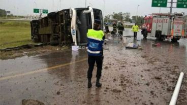 De acuerdo a las primeras averiguaciones, el ómnibus siguió derecho en una curva mientras caía una copiosa lluvia, embistió los guardarraíl y volcó.