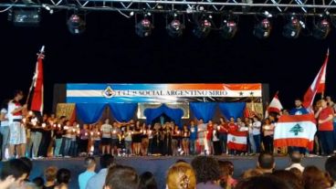 Los grupos estables Haiat y Shams Suria realizaron una sobria presentación precedida por una ceremonia con velas. Apoyaron representantes de las colectividades de Libano y Palestina y en el escenario mayor representantes de Siria subieron con la bandera del país durante el minuto de silencio y la invocación por la paz que programaron los organizadores.