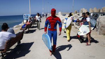 1 de 5 | Un surfista israelí con un disfraz de Spiderman participa en un consurso de disfraces y esquí con motivo del "purim" en Ahdod. (EFE)2 de 5 | Un surfista israelí con una máscara de Guy Fawkes participa del concurso con motivo del "purim" en Ahdod. (EFE)3 de 5 | Un surfista israelí con una máscara de Guy Fawkes participa del concurso con motivo del "purim" en Ahdod. (EFE)4 de 5 | Un surfista israelí con una máscara de Guy Fawkes participa del concurso con motivo del "purim" en Ahdod. (EFE)5 de 5 | Un surfista israelí con un disfraz de banana participa del concurso con motivo del "purim" en Ahdod.