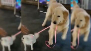 Una usuaria de Twitter compartió en su un cuenta un video en el que dos perros protagonizan una escena casi cinematográfica. En ella –y sin guión– un golden retriever de gran porte intenta “llevarse” a un pequeño pomerano.
