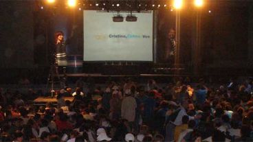 Luego del acto, que comenzó una hora más tarde de lo previsto (a las 20) por la demora de la llegada de Cristina a la ciudad, la primera dama emuló a su marido y bajó del escenario para mezclarse entre la gente.