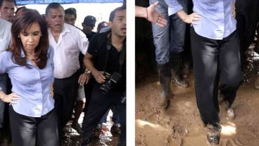 1 de 3 | Barro y más barro, el paisaje de Tartagal.2 de 3 | Sin botas: la presidenta recorrió a pie la zona del alud.3 de 3 | Los habitantes de Tartagal se acercan al lugar de arribo de la presidenta.