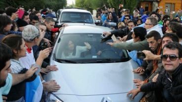 Vestida con remera blanca, un chal y sin sus habituales anteojos oscuros, la ex jefa de Estado -visiblemente emocionada- saludó a los manifestantes desde el vehículo, un Renault Megane color champagne, y junto a la comitiva partió a paso lento entre la gente escoltada por dos Ford Ranger que componen la custodia.