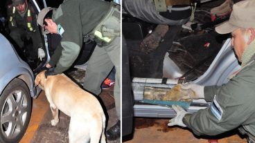 Durante la requisa, los agentes sumaron el apoyo de Larry. Tras olfatear el automóvil, el perro antidrogas reaccionó al pasar cerca del sector del zócalo ubicado en la puerta delantera, del lado del conductor, según informaron desde el Ministerio de Seguridad de la Nación.