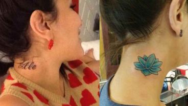 La actriz reemplazó la inscripción "Ale", que podía leerse en su cuello, por el citado dibujo.