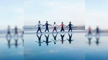 En las últimas horas se viralizó un breve video en el que se muestra a un pequeño grupo de personas caminando en fila al borde de un espejo de agua.