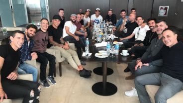 En la imagen se los puede observar a Angelito Di María -uno de los últimos en llegar al complejo del casino-, Marcos Rojo, el sanlorencino Javier Mascherano, los rosarinos Nahuel Guzmán y Maxi Rodríguez, Pipita Higuaín, Mariano Andújar, Pablo Zavaleta y Pocho Lavezzi.