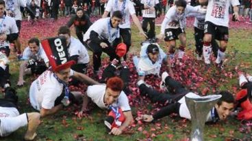 Tras el pitazo final del árbitro se desató la alegría. Los jugadores formaron una ronda el cancha y se desarmaron en la eufórica vuelta olímpica. No estuvieron solos: sus hijos ingresaron a la cancha y salieron las remeras alusivas. La de los padres, con la inscripción “orgullo + gloria 2013”; la de los chicos, con un “yo te vi campeón”. Y qué campeón.