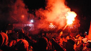 “Soy de Newell’s”, cantaron después, trepados sobre el travesaño del arco que da al hipódromo. La popular, colmada, enloqueció con ese equipo de hinchas leprosos que compartió el título con ellos.