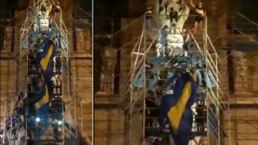 Tras el empate de Boca Juniors en La Plata que lo consagró campeón de la Superliga Argentina de Fútbol, los hinchas salieron a festejar. Las celebraciones se repitieron en varios puntos del país pero en Rosario se registró un episodio descontrolado y peligroso. Los fanáticos se subieron a los andamios del Monumento Nacional a la Bandera, que atraviesa obras, y desde allí descolgaron una bandera. Sobre la precaria estructura, se los vio saltar y cantar. El momento se difundió por Twitter.