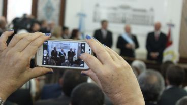 Otra curiosidad fue la que brindó el entrante ministro Maximiliano Pullaro sentado en una especie de butaca y, a pocos centímetros de él, el saliente Raúl Lamberto. Sin mucho diálogo de por medio, ofrecieron una imagen del pasado y el futuro en materia de Seguridad.
