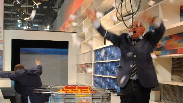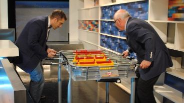 La rivalidad entre Juan Junco y Miguel Tessandori en la pantalla se trasladó a un desopilante desafío al metegol, que realizaron este viernes en De 12 a 14 (El Tres).