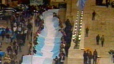 Luego de las palabras de Kirchner empezó la acaso parte más emocionante del acto: el desfile cívico, que incluye la bandera más larga del mundo llevada por el propio público, el paso de los ex combatientes de Malvinas y de un grupo de conscriptos que había desfilado en 1957, en el acto de inauguración del Monumento.