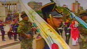 A las 13.25 aproximadamente finalizó todo. El presidente, que rompió el protocolo y saltó las vallas para saludar cara a cara al público, ya se había ido hacia la Bolsa. Y la lluvia, ya más copiosa, había espantado a casi todos los rosarinos que pasaron por el Monumento.