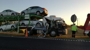 De acuerdo a lo informado por el periodista Juan Cruz Funes de El Tres, uno de los rodados trasladaba cereal y parte de la carga terminó en el asfalto. El otro es un camión que trasladaba autos.