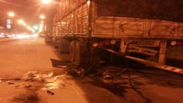 El periodista Fernando Carrafiello informó en Radiópolis (Radio 2) que este viernes a la madrugada, un Fiat Regata terminó debajo de un camión que estaba estacionado en Ovidio Lagos al 4800, a metros de la Jefatura de Policía.
