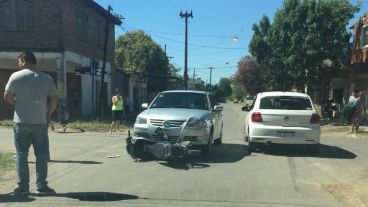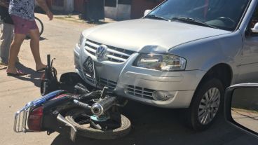 Dos motociclistas resultaron heridos, con fracturas en sus piernas, al colisionar este jueves con un auto en una esquina de la zona oeste de Rosario.