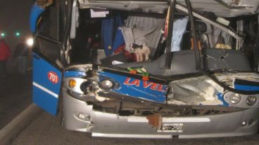 Dos camiones de la empresa Andreani, una camioneta Nissan y un colectivo de la empresa La Veloz chocaron en cadena en la autopista a Buenos Aires a la altura del puente del Arroyo Saladillo, sobre la mano norte-sur. También intervino un auto Ford K, custodia de la empresa de transporte.