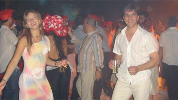 Entonces llegó la fiesta de fuegos artificiales, que durante cerca de diez minutos entretuvo no sólo a los invitados a la fiesta sino además a los habitantes de zona oeste, quienes pudieron ver en el cielo los más extraños dibujos de colores. Y aunque desde el comienzo hubo baile, la pista se llenó al máximo con la llegada del cotillón, que justo después del espectáculo de fuegos artificiales, vistió con sombreros y antifaces a los invitados.