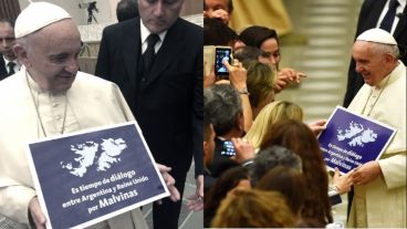 El Sumo Pontífice posó este miércoles con un cartel de la campaña que pide: "Es tiempo de diálogo entre Argentina y Reino Unido por Malvinas”.