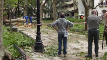 Por la peatonal parecía que habían pasado los muchachos de Bin Laden. Áreas cercadas; particulares y empleados municipales todavía barriendo vidrios, ramas y algún que otro resto de mampostería; ruido de cristales de quienes terminaban de romper los restos en las ventanas para dar lugar al vidriero y al vidrio nuevo, que sabe Dios cuánto demorará en llegar.