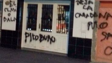 El frente de la casa donde vive la abuela de Maximiliano Rodríguez fue el blanco de pintadas en la mañana de este jueves. Si bien hay varios mensajes, se resalta el que indica: “El clásico o balas”.