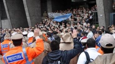 El conflicto de los prefectos se desató este martes. Ante una reducción que sufrió en sus salarios un grupo por un cambio en la liquidación, efectivos de esa fuerza en Buenos Aires se concentraron frente a la sede de Puerto Madero. El reclamo: los descuentos salarios que sufrieron (en algunos casos superiores al 30 por ciento) por la aplicación de un decreto firmado por la presidenta Cristina Kirchner y la ministra de Seguridad, Nilda Garré.