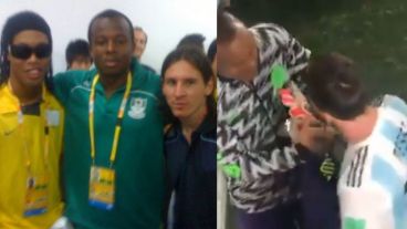 El arquero tampoco fue titular aquella vez pero aprovechó para sacarse una foto con las figuras del podio: Messi y a Ronaldinho, tercero con Brasil.