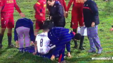 Sin embargo, durante el cotejo sucedió un insólito blooper, que fue protagonizado por los camilleros del equipo local. El jugador Braian Sánchez recibió una infracción y se dispuso a ser retirado del campo de juego para ser asistido. Al no tener carrito, la camilla fue traccionada por dos empleados del Gallego. Uno de ellos tropezó y dejó caer al futbolista, quien terminó yéndose de la cancha a pie.