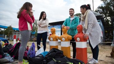 “Lo ideal –explicó Mauro– es nadar un día y correr el otro. Los sábados lo dejamos para practicar con los elementos”. Por elementos se refería al “cotillón”: maniquíes que hacen las veces de las “víctimas” –como llaman a las personas e situación de ahogo–, patas de rana, postas, cuerdas y esquíes –embarcaciones similares a un kayak pero más finitas y livianas–, entre otras cosas.