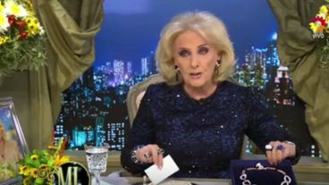 "Miren qué regalazo he recibido". Mirtha Legrand mostró con alegría y entusiasmo el collar que le regaló el titular de la CGT Azopardo Hugo Moyano, quien fue invitado al programa nocturno de la diva, La noche de Mirtha.