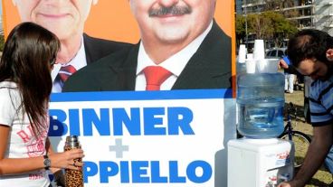 Según contó el funcionario, además del agua caliente, los vecinos también pueden llevarse una bolsita de yerba, que se entrega en sobres con las caras de Binner y Cappiello, la leyenda SuMate, y la consigna que identifica a la lista, Rosario Suma.