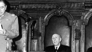 1 de 3 | En 1973 mientras leía el mensaje de la Junta Militar ante el pleno de la Corte Suprema2 de 3 | En 1975 en el funeral del Jefe de Estado, Francisco Franco, en la plaza de Oriente3 de 3 | Murió tras una semana de internación tras sufrir un infarto de miocardio y un edema