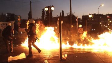 En la manifestación de unas 12.000 personas opuestas al acuerdo, varias docenas de jóvenes con cascos y enmascarados se enfrentaron con la policía arrojando proyectiles y cócteles molotov, a lo que las fuerzas del orden respondieron con gases lacrimógenos.