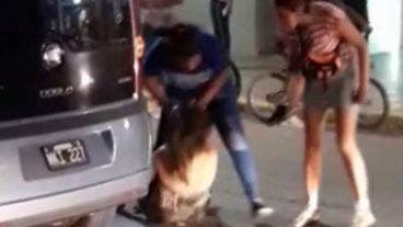 Mientras los supuestos ladrones se apoderaban de lo que tenían a mano, por la otra puerta la esposa del conductor de la camioneta tomó del cabello a la mujer que iba de acompañante en la camioneta, la bajó del rodado, la arrojó a la cinta asfáltica y comenzó a golpearla.
