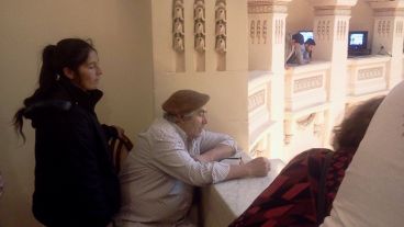 Los dos, codo a codo en la barra, siguen mirando a los legisladores. Alejandro insiste y ahora enfoca al hombre de chomba rosa.