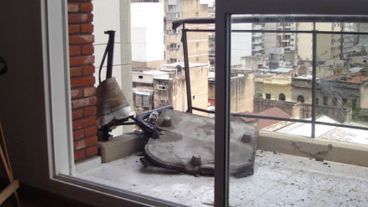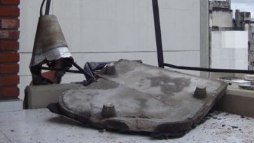 Al punto de que una losa de cemento de un metro cuadrado, que habría sido la tapa del respiradero de un edificio, voló hacia otro de la misma manzana, provocando serios destrozos en el balcón de un departamento que se encontraba sin gente en ese momento.