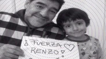 "Fuerza, Renzo!!!", reza el mensaje que escribió el Diez y que se puede ver en una foto en la que aparecen el ídolo junto a su nito Benjamín, fruto del amor entre Giannina y el Kun Agüero. La imagen fue difundida por la menor de las Maradona quien tuiteó: "Amor y mucha luz para RENZO!!! Fuerzaaaaa chiquitito!!!!! Fuerza familia!".