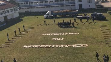 La funcionaria informó en Twitter de un operativo antidrogas con una foto aérea en la que se lee "Argentina sin narcotráfico" sobre el césped del predio del Cuerpo de Policía Montada de Misiones.