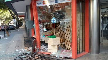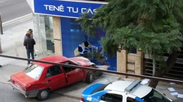 Uno de los vehículos quedó incrustado en la vidriera de Costa Bouchard y el otro rompió todo el frente de una mueblería de esa misma esquina.