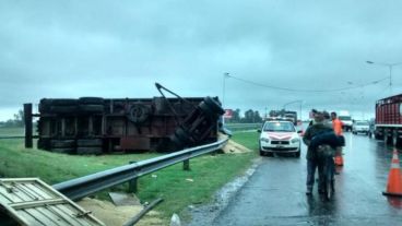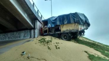 Un camión que llevaba soja a Pérez protagonizó un accidente en avenida Circunvalación y Oroño. El acoplado del vehículo se desprendió con el impacto y el conductor sólo sufrió un golpe en uno de sus brazos.