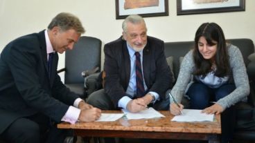 El acuerdo se materializó a través de un convenio que suscribieron este martes, en la facultad de Derecho de la UNR, el ministro de Justicia y Derechos Humanos, Ricardo Silberstein; el decano de la facultad, Marcelo Vedrovnik; el subsecretario de Asuntos Registrales de la provincia, Matías Figueroa Escauriza; y la presidenta del centro de estudiantes, Gabriela Menegozzi.