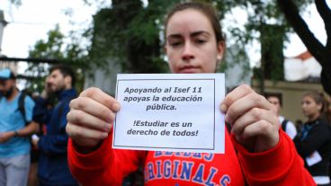 Los estudiantes del Instituto Superior de Educación Física Nº 11 “Abanderado Mariano Grandoli” se manifestaban esta mañana en el predio de Dante Allighieri 2550 para que se retome el ciclo lectivo, interrumpido sopresivamente el viernes pasado por las malas condiciones edilicias. Quieren que se adecúen las instalaciones pero que se continúe con las clases.