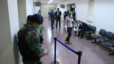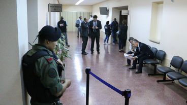 La audiencia comenzó con un riguroso cerrojo policial y las diez personas detenidas fueron llevadas junto a sus defensores en la Sala 1 del edificio de Tribunales. En un recinto contiguo, con vista al anterior, se ubicaron familiares, medios de comunicación y público en general. También estaban funcionarios del Ministerio de Seguridad de Santa Fe. Hubo restricción al ingreso de cámaras.