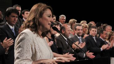 Fein llegó caminando desde el Palacio de los Leones y estuvo acompañada por todos los integrantes del nuevo gabinete. En el “palco de honor” la escoltaron sus dos antecesores en la intendencia y compañeros del Partido Socialista: el ex gobernador Hermes Binner y el próximo mandatario provincial, Miguel Lifschitz, ambos recién llegados de los actos de la asunción presidencial de Buenos Aires.