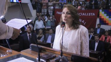 “Es un orgullo tomar juramento a quien es la primera mujer intendenta de Rosario”, dijo la concejala radical Daniela León, flamante presidenta del cuerpo deliberativo, en el inicio de la ceremonia convocada para minutos después de las 18.