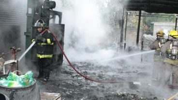 Asomaban las primeras luces del día cuando comenzó a arder el galpón, que almacenaba plástico compactado, un material altamente inflamable.